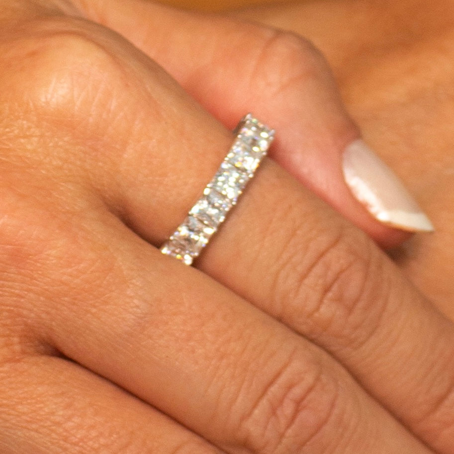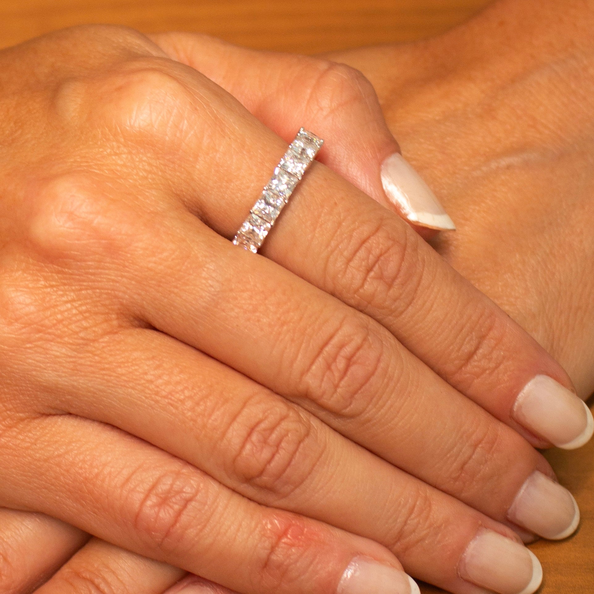 Uma aliança Princess com pedras de 0,30 pontos cada geralmente possui um design elegante e moderno. As pedras em formato princess são quadradas e têm um brilho intenso, devido ao seu corte. O tamanho total da aliança pode variar dependendo do número de pedras e do design específico, mas uma aliança típica pode ter cerca de 2 a 4 mm de largura.