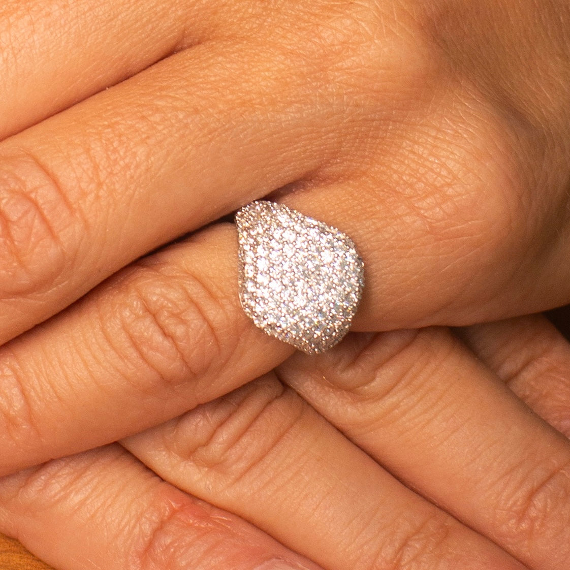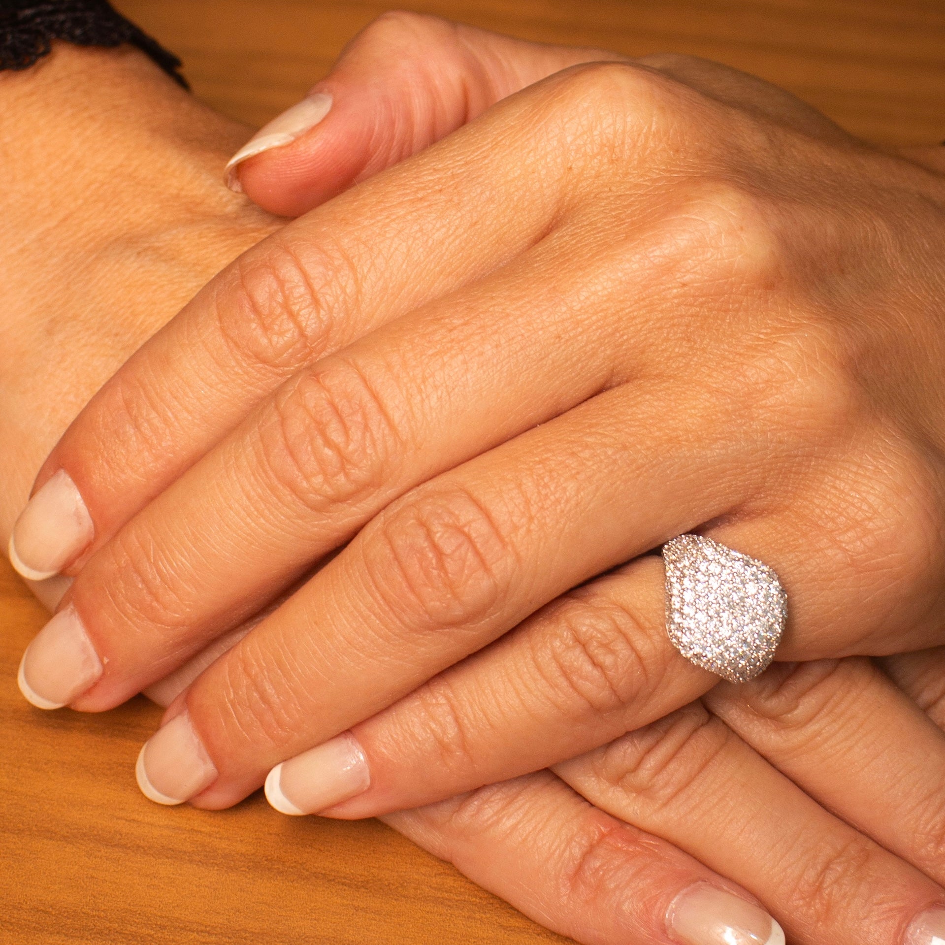O anel dedo mínimo em prata com pavê de moissanite é uma escolha perfeita para quem deseja adicionar um toque de glamour ao visual. Seja usado sozinho ou empilhado com outras joias, ele representa um estilo moderno e elegante, ideal para diversas ocasiões.