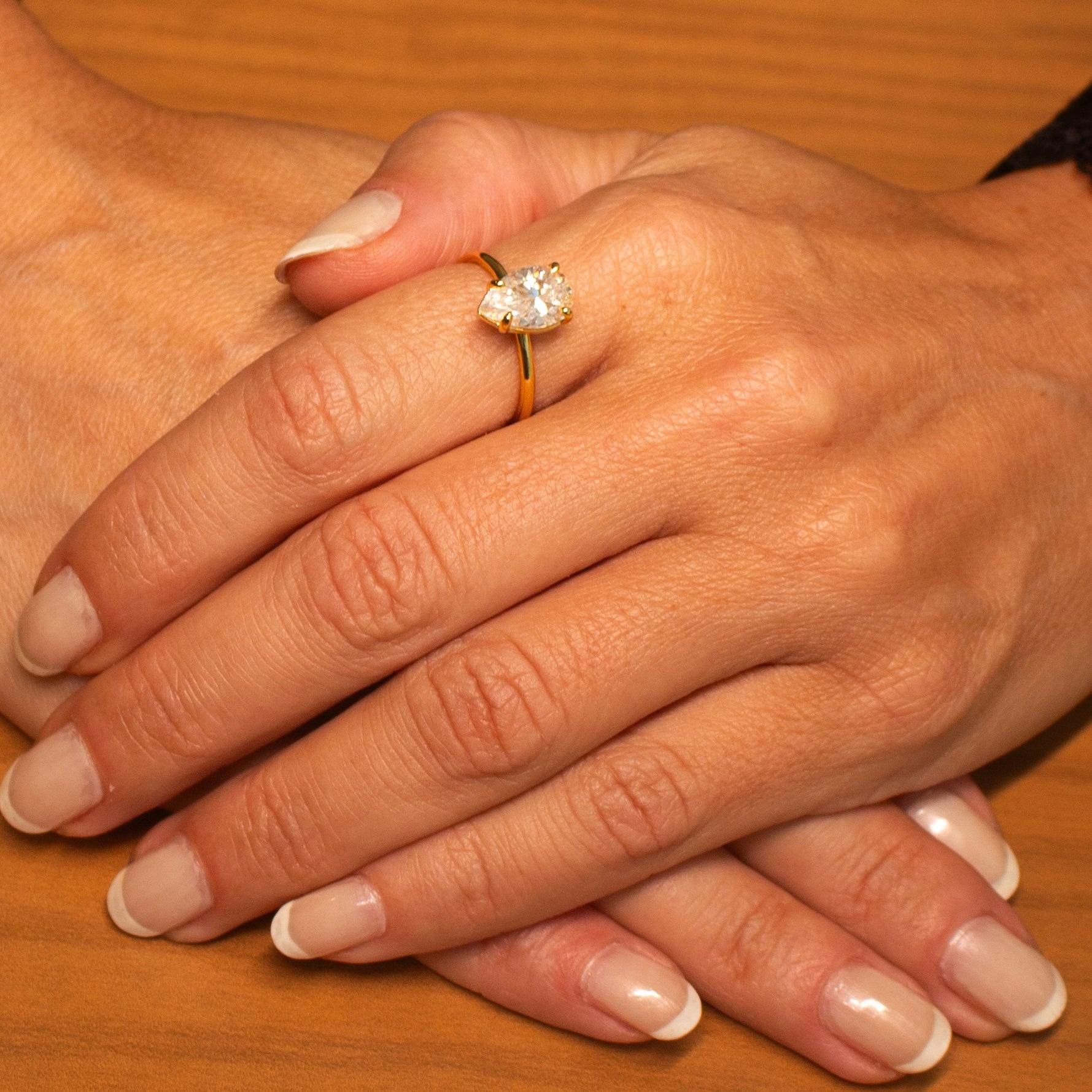 Anel gota de 3 quilates em prata com banho de ouro amarelo 18k e moissanite