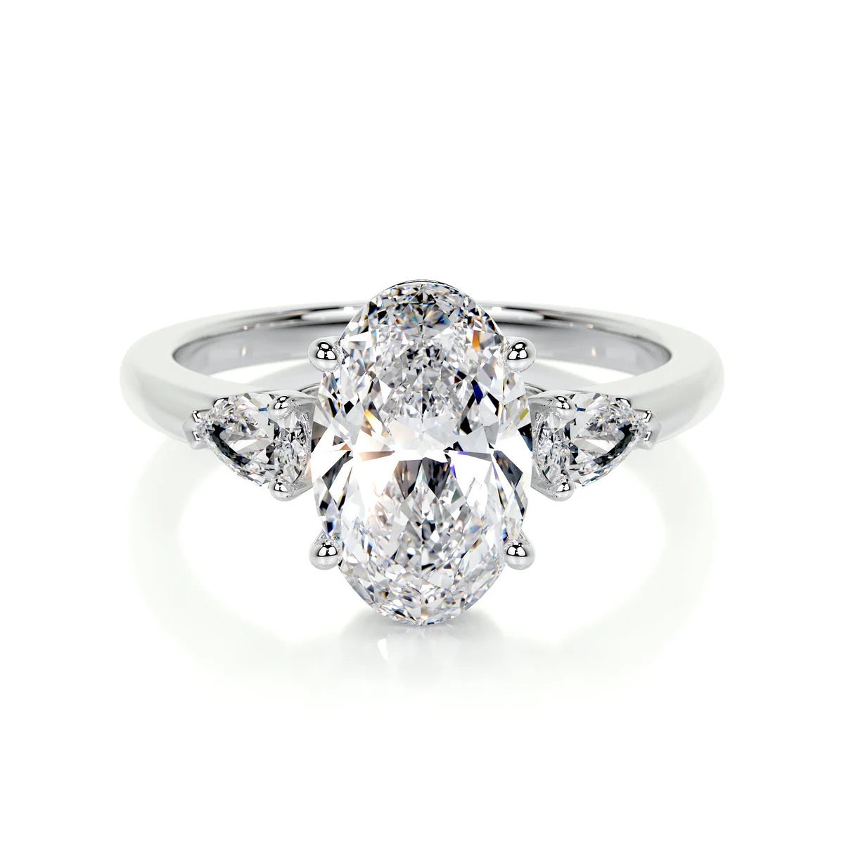 - *Pedras laterais*: Duas pedras de moissanite em forma de gota, cada uma com 1 quilate e tamanho aproximado de 6x4 mm a 7x5 mm. As pedras de gota são posicionadas simetricamente em cada lado da pedra oval central, criando um visual harmonioso e equilibrado.