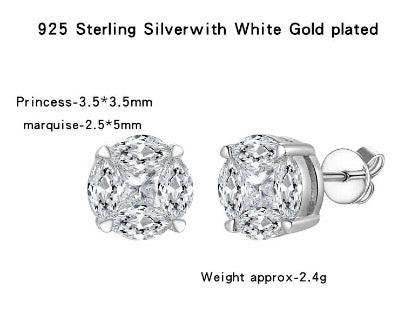 Brinco de prata 925 com banho de rodium, de 8.5mm especificações das pedras em mm está na segunda fotos.