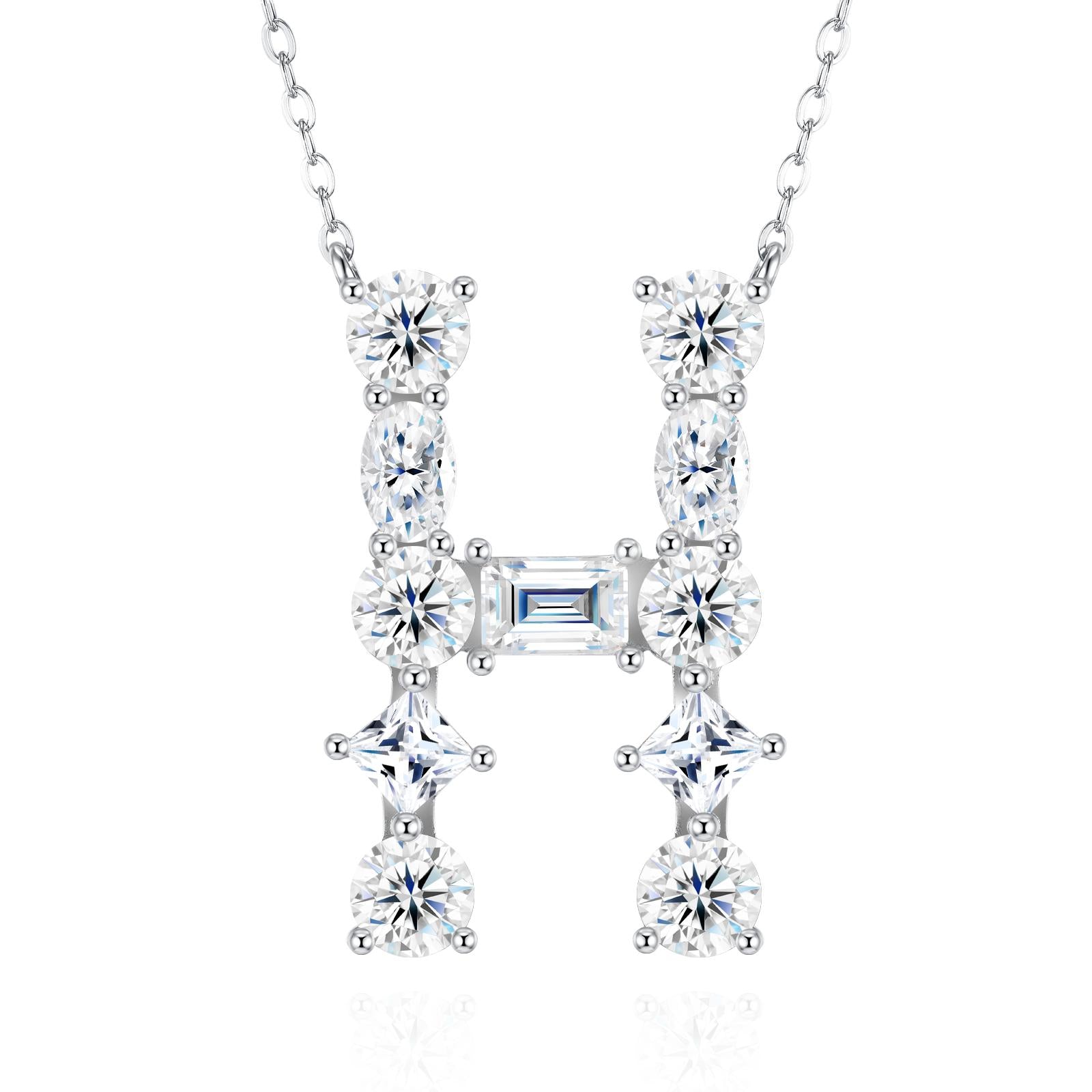 Letra H de prata 925 e banho de rodium, com pedras de 50 pontos