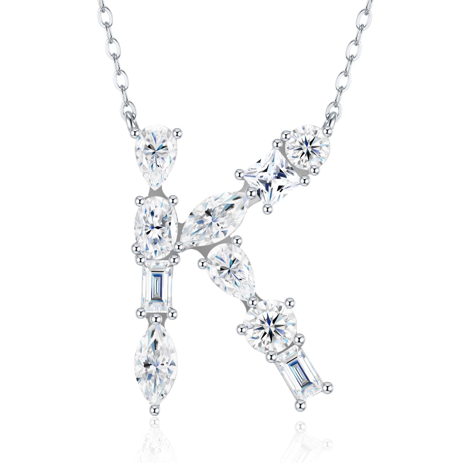 Letra K de prata 925 e banho de rodium, com pedras de 50 pontos