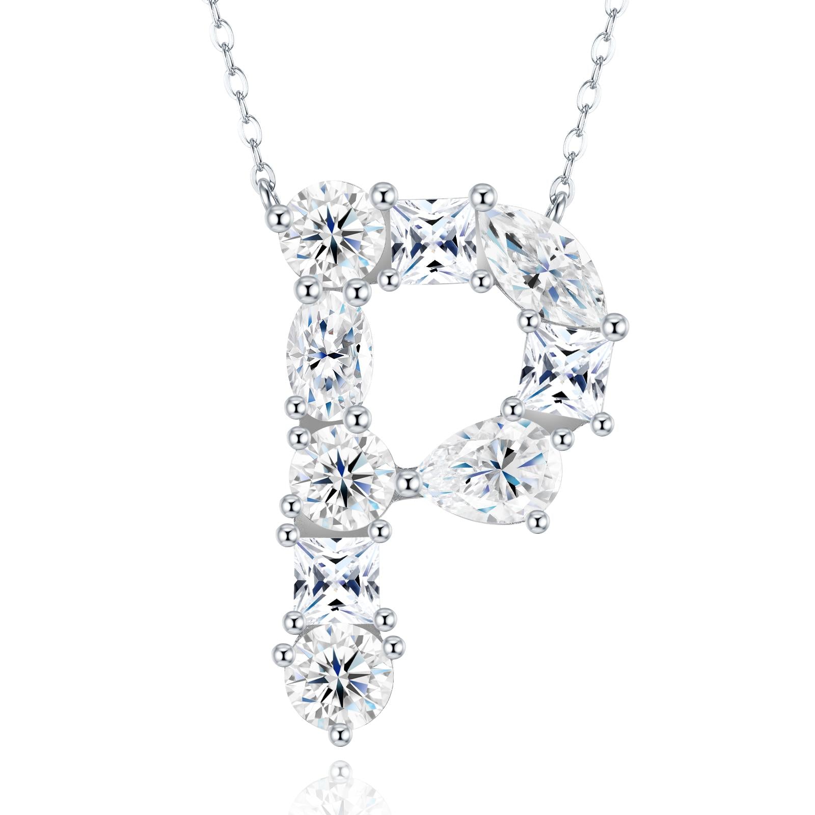 Letra P de prata 925 e banho de rodium, com pedras de 50 pontos