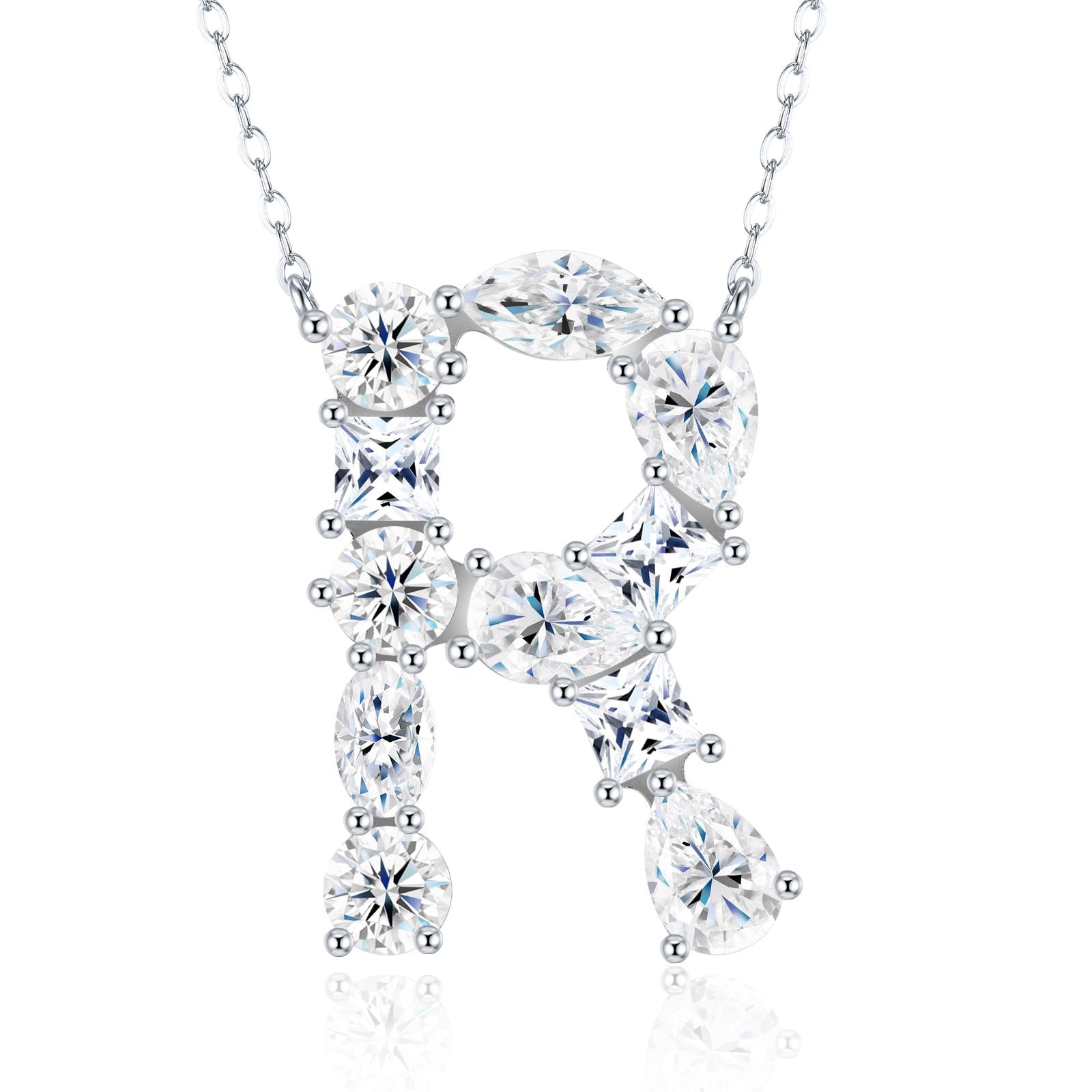 Letra R de prata 925 e banho de rodium, com pedras de 50 pontos